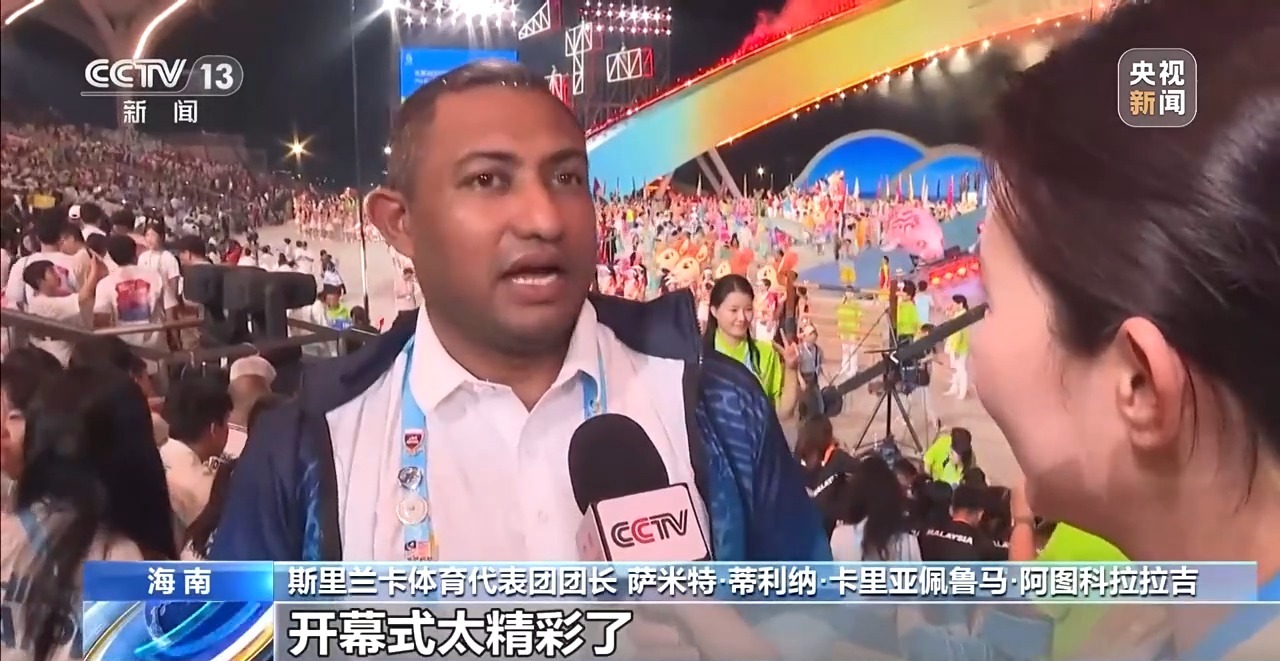斯里兰卡体育代表团团长 萨米特·蒂利纳·卡里亚佩鲁马·阿图科拉拉吉:开幕式太精彩了,斯里兰卡参赛队伍是最庞大的代表团之一,我们今晚收获了非常棒的回忆。
