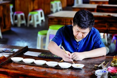 这套作品在2022年重获巴拿马万国博览会金奖。更让周健欣慰的是,经过一系列的产品创新,近几年主要消费群体中,90后、00后消费者占比已达65%。他开创的徽墨研学、直播带货,能让年轻人描着“鱼跃龙门”墨锭,在体验中传承文化。